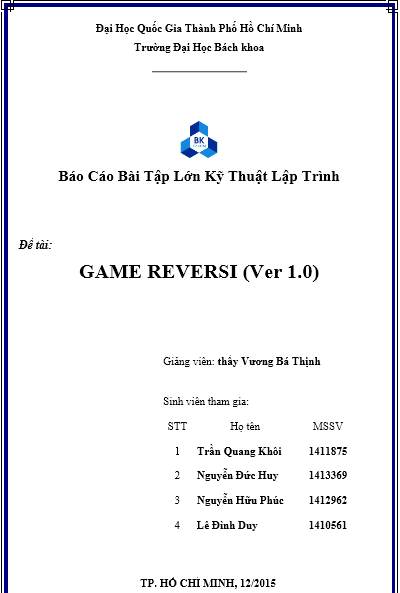 Mẫu báo cáo bài tập lớn của trường ĐH Bách Khoa TpHCM.