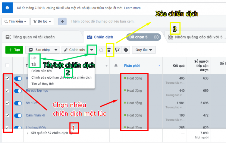 Trong quá trình chạy quảng cáo trên facebook, nếu bạn cảm thấy chiến dịch quảng cáo đó không đạt hiệu quả như bạn mong muốn thì bạn có thể xóa quảng cáo facebook đó hoặc là tắt chúng đi.